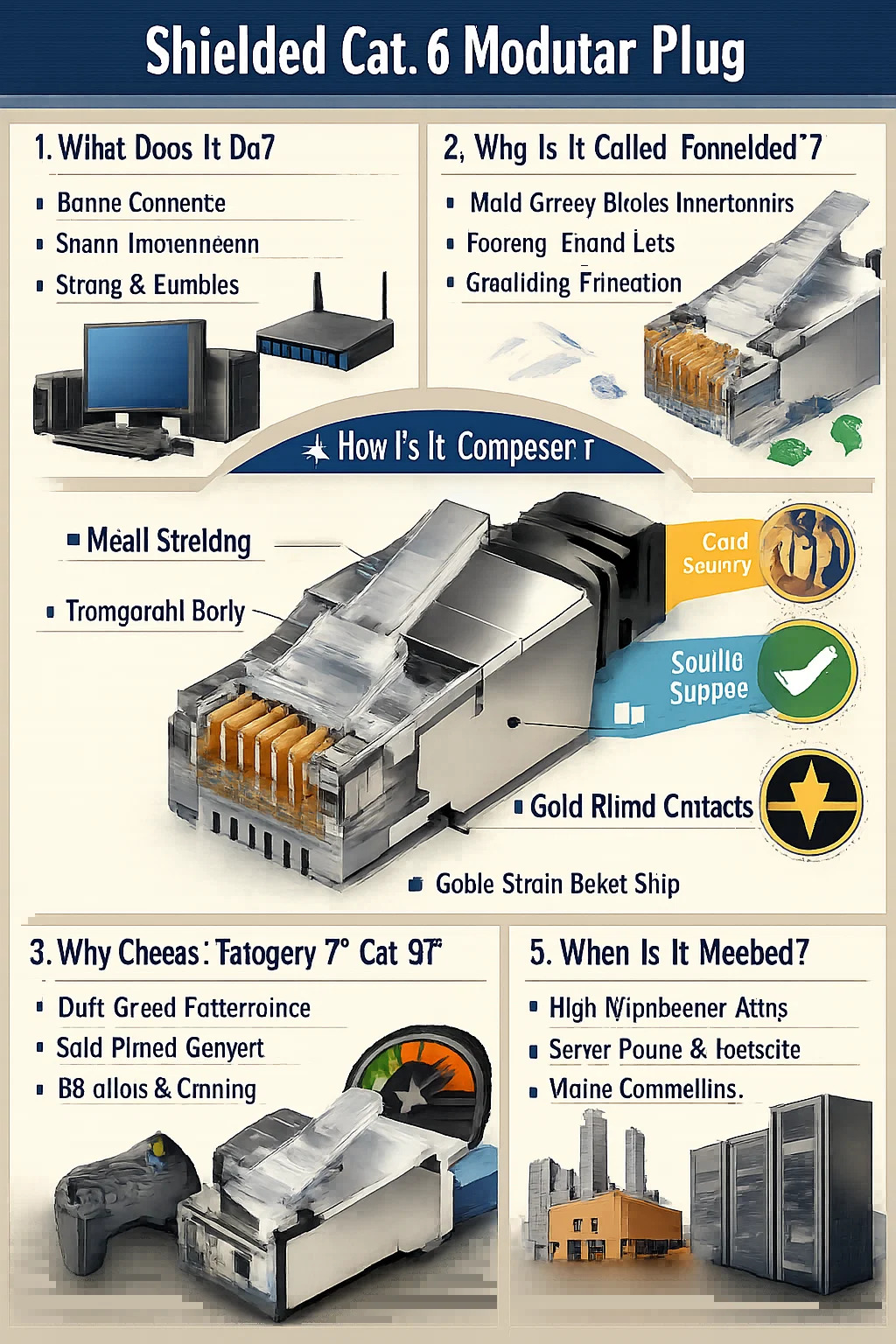 Rychlejší a silnější: „Kategorie 6“ představuje jeho výkonnostní úroveň. Jeho vnitřní kovové kontakty (pozlacené) a uspořádání jsou optimalizovány pro potřeby vysokorychlostního síťového přenosu a poskytují silnější přenosové schopnosti než starší konektory.