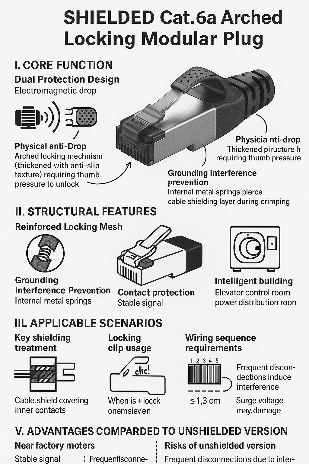 Podrobné vysvětlení Stíněná Cat.6a Arched Locking Modular Plug
