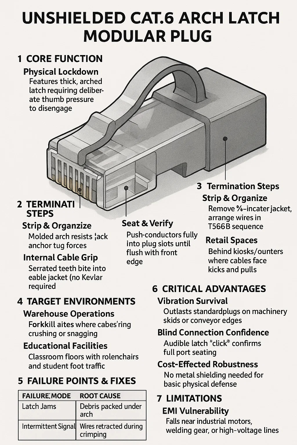 Nestíněná modulární zástrčka Cat.6 Arch Latch