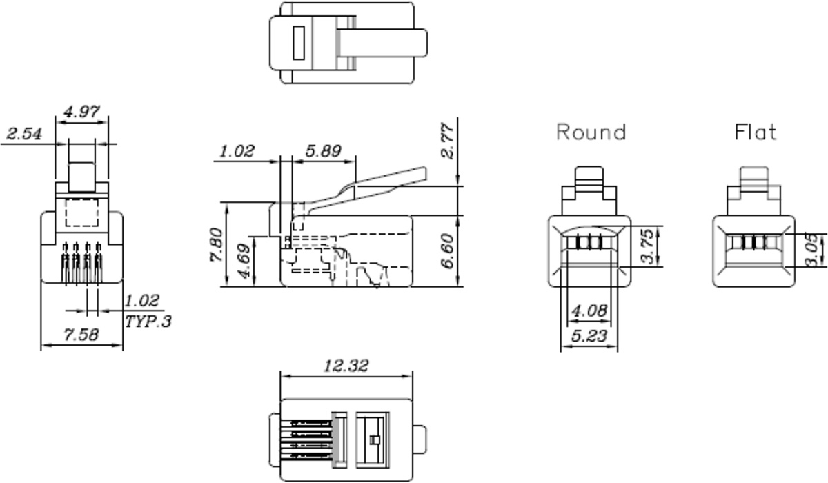 EXW vysoce kvalitní telefonní zástrčky RJ11 4P4C jsou vyrobeny z dovážených surovin.